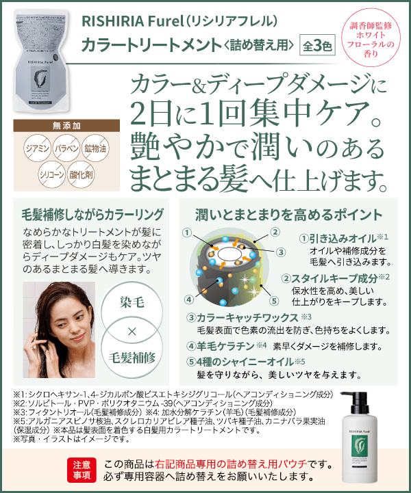 <セット内容> リシリアフレル カラートリートメント詰め替え用パウチ/240g 全3色×2商品詳細はこちら