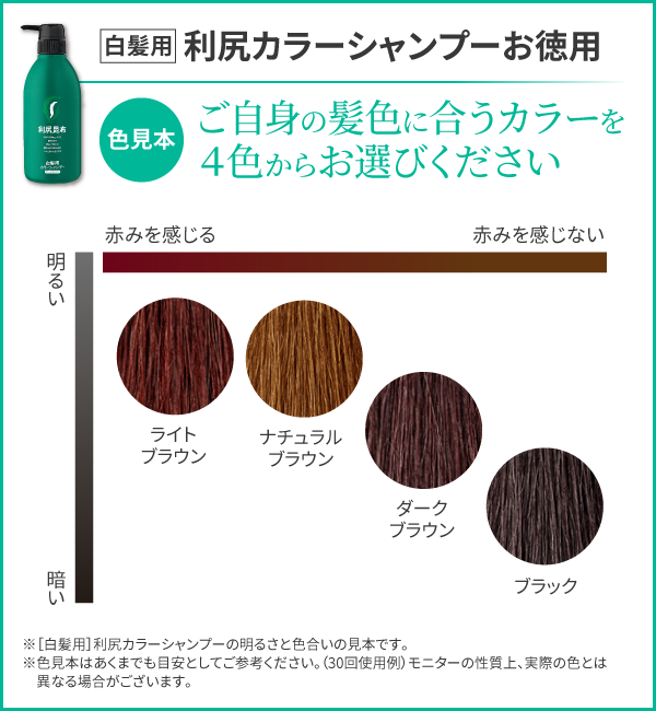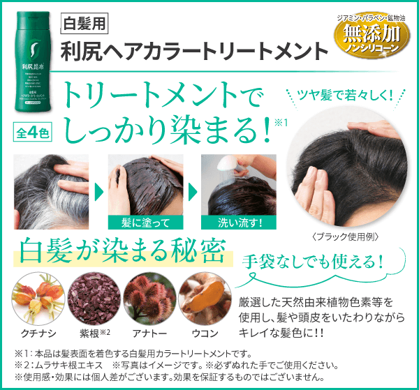 <セット内容> [白髪用]利尻ヘアカラートリートメント/200g 全4色x4商品詳細はこちら