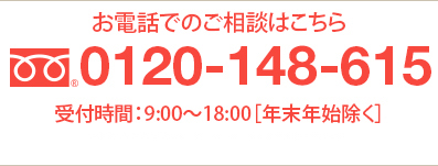 お電話でのご相談はこちら 0120-148-615 受付時間:9:00~20:00[年末年始除く]