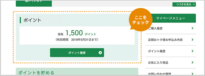 お持ちのポイントは、ログイン後、マイページでご確認いただけます。