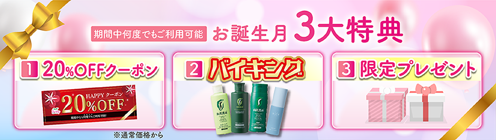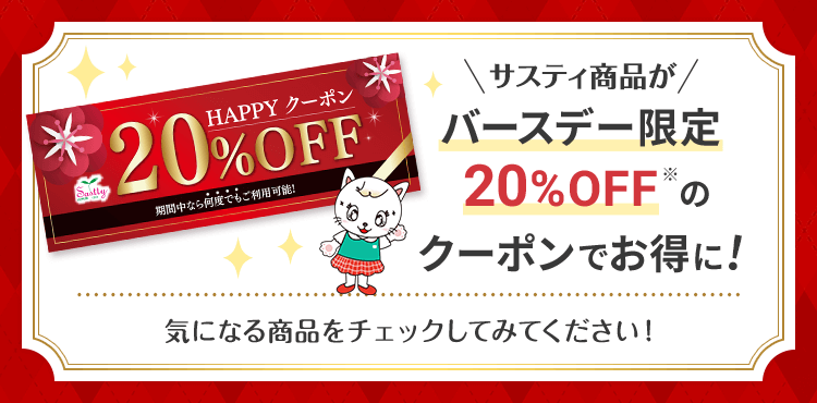 - ※一部商品を除く※バースデー限定20%OFFは通常価格からの適用となります