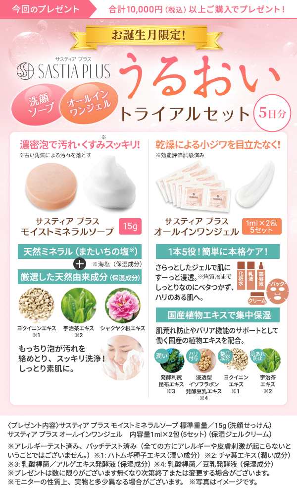 - ※サスティの商品は天然由来成分が高配合されているため、ご購入後はお早めにお使いください。