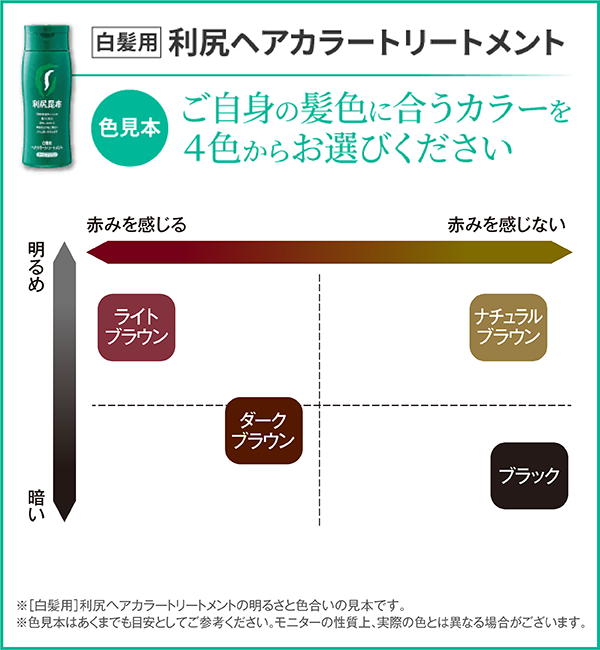 <セット内容> [白髪用]利尻ヘアカラートリートメント/200g 全4色×4本商品詳細はこちら