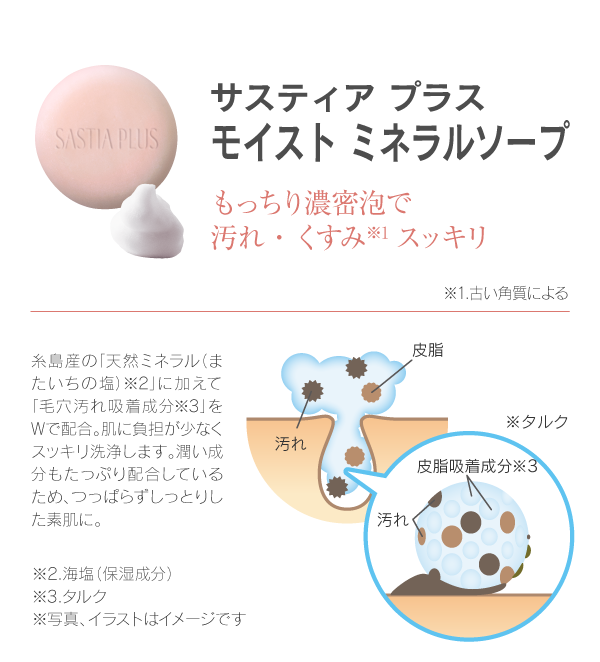 <標準重量> サスティア プラス モイストミネラルソープ/60g(約1ヵ月分※4)商品詳細はこちら
