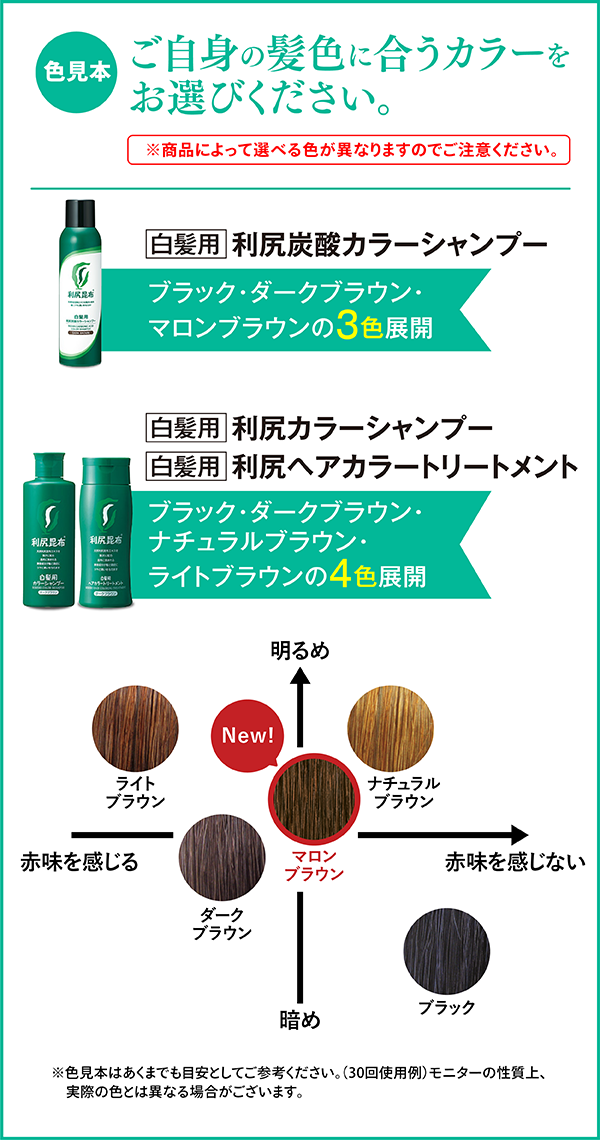 - ※利尻ヘアカラーシリーズ商品をご使用の際は必ず48時間のパッチテストを行ってください。