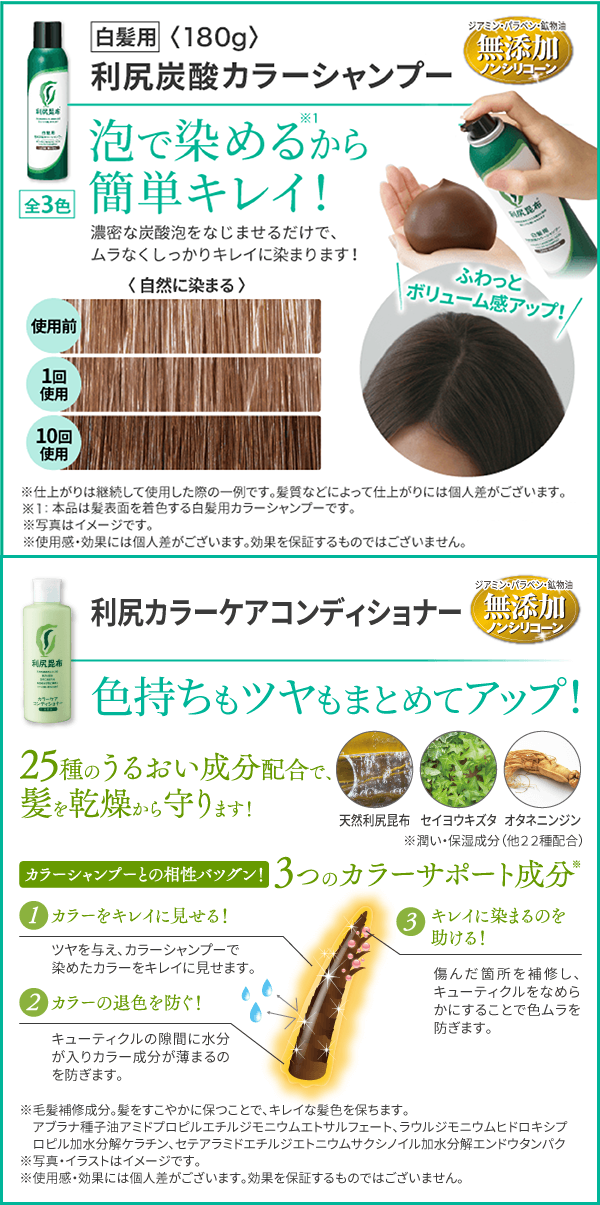 - ※利尻ヘアカラーシリーズ商品をご使用の際は必ず48時間のパッチテストを行ってください。