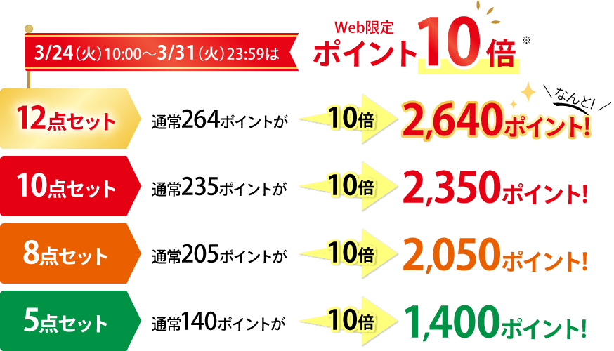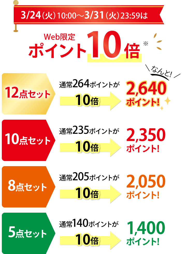 - ※バイキング12点セット購入特典のポイントは、お届け月の翌月中旬以降に順次付与いたします。