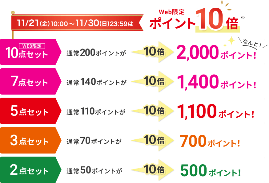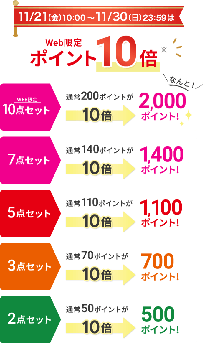 ・ポイント10倍キャンペーンは2025年11月21日(金)10:00~2025年11月30日(日)23:59までの開催です。